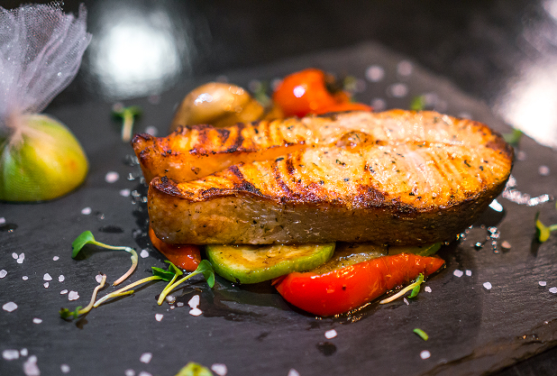 Medalhão de filé mignon com molho de pimenta verde e batatas rústicas.